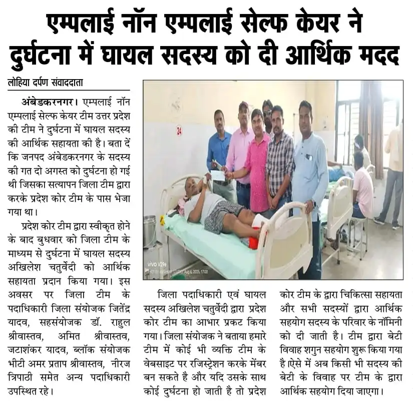 एम्पलॉई नॉन एम्पलॉई सेल्फ केयर टीम उत्तर प्रदेश की स्थापना 28 फरवरी 2023 को सरकारी सेवारत व गैर सरकारी सेवारत लोगों के लिए सहयोग हेतु बनाई गई, उत्तर प्रदेश की एक टीम है । (संचालित-ENES CARE SAMITI REG-AY161/2023)